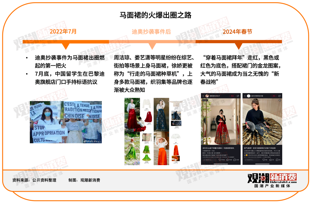 2022年7月迪奥抄袭事件为马面裙出圈燃起第一把火。自此,马面裙走上了一条火爆的出圈之路。今年春节,马面裙更是作为“新春战袍”,成为很多人出门拜年的穿搭首选。![]()