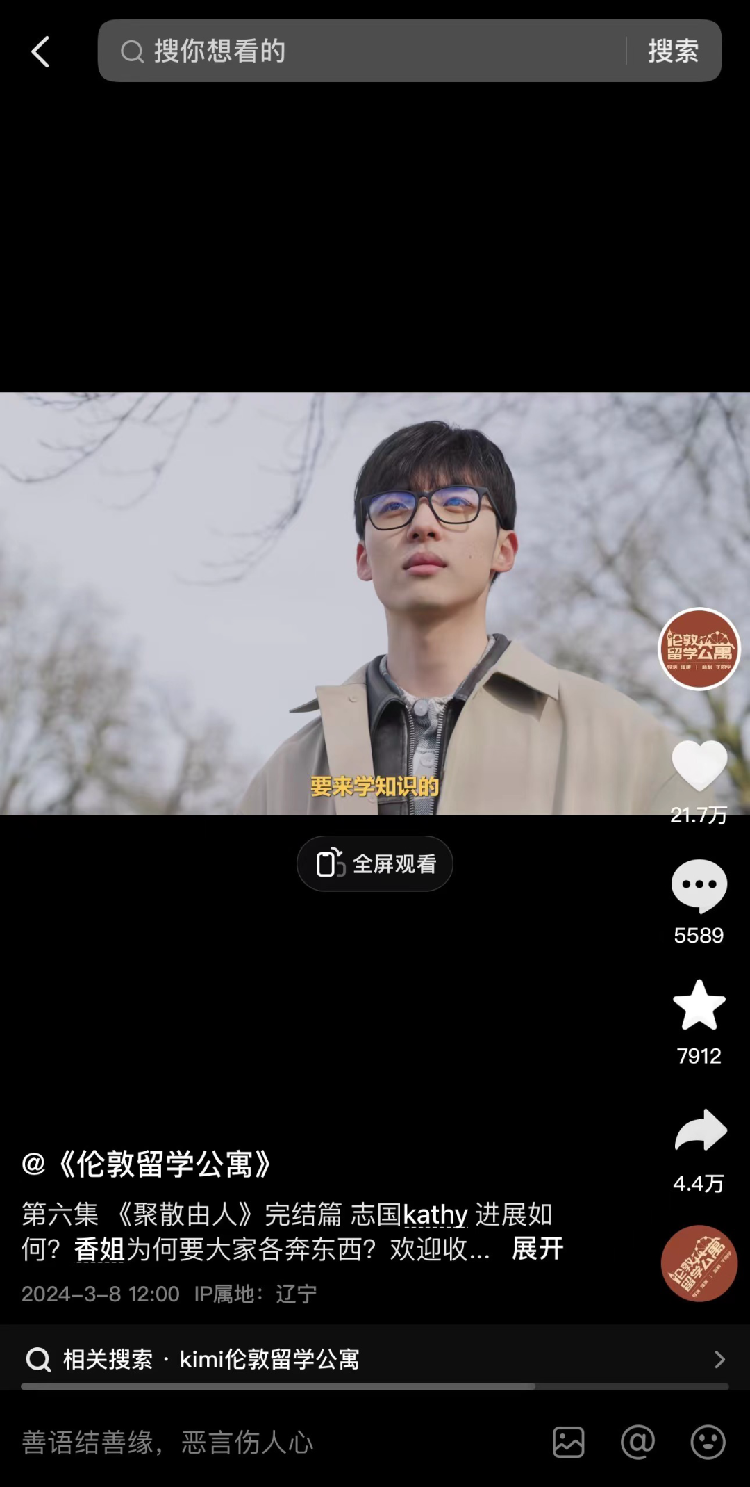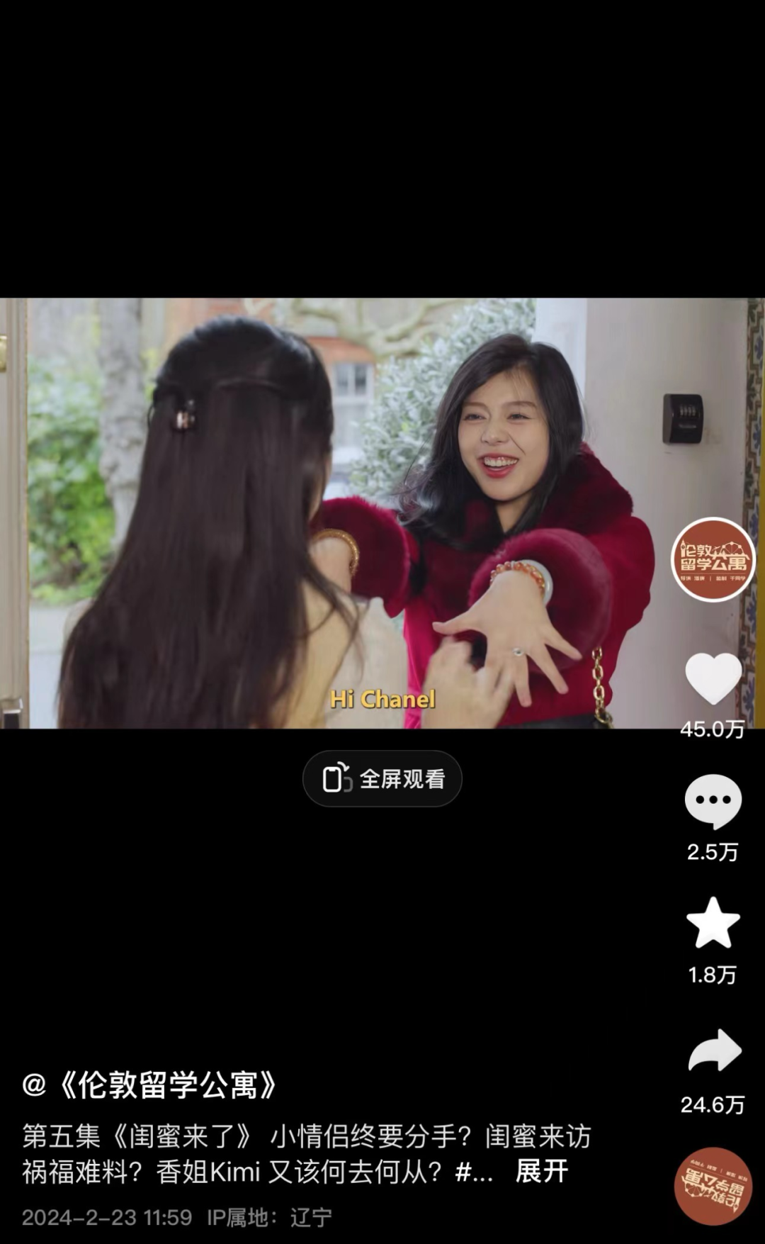除了在短剧领域代表了一种差异化尝试。《伦敦留学公寓》背后的一条文化引线是留学生身份在社交网络舆论场里的流变。