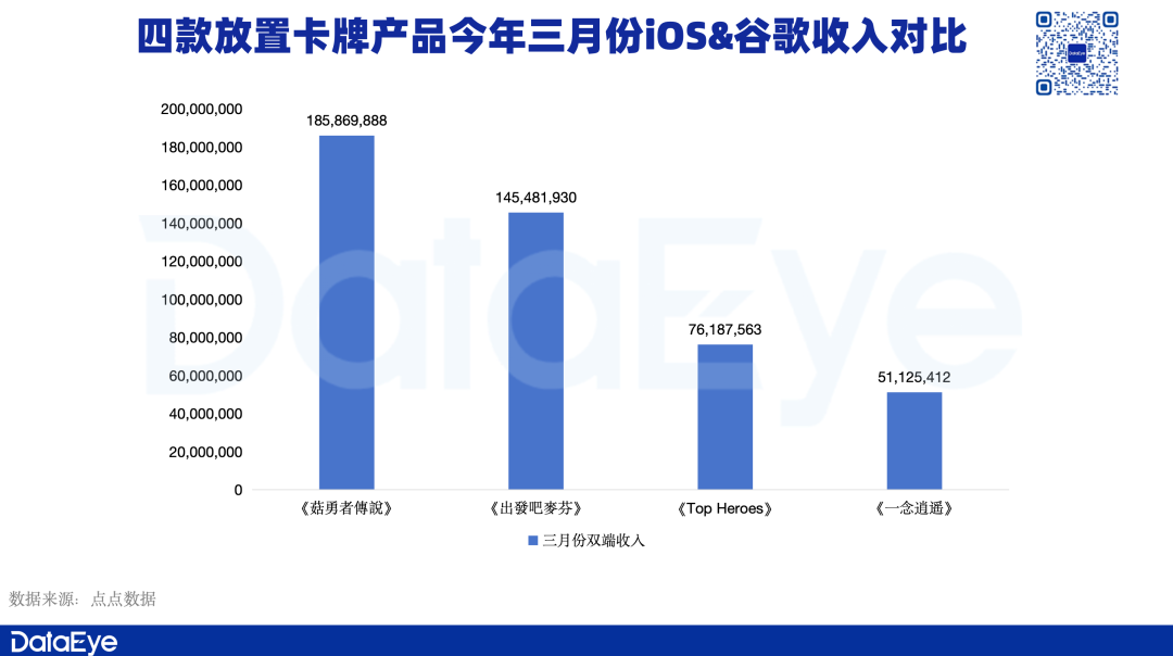 而且在今年三月份,这些产品在双端平台都有着不错的收入。在这一情况下,无疑提升了《AFK Journey》突围的难度。但DataEye研究院发现,《AFK Journey》存有两个优势条件: