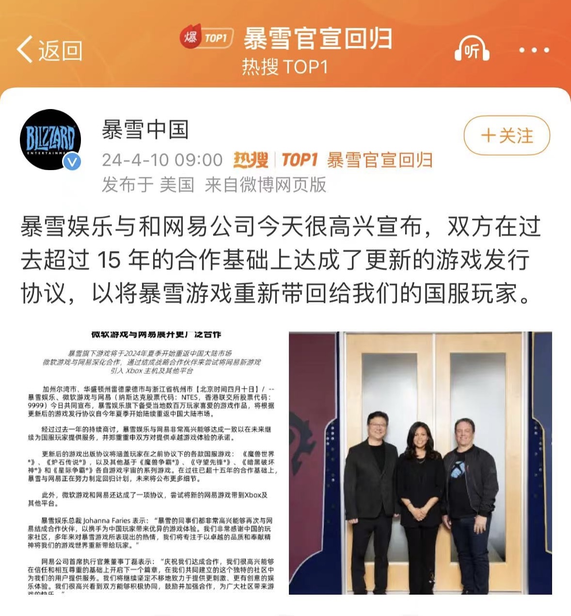 不过在 4 月 10 日,暴雪中国终于官宣了回归中国市场的消息: