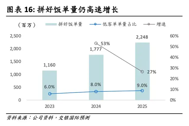 拼好饭业务是美团以「低价换单量增长」的手段之一,拼好饭等低客单价SKU是美团外卖AOV下降的主要原因。