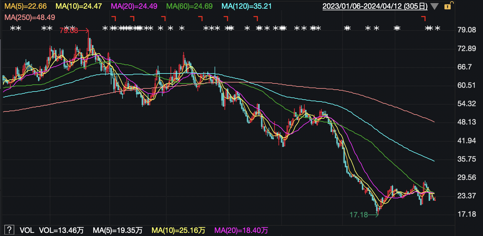 就最新股东名单来看,目前公司前十大股东持股数量为1.16亿股,占总股本比例为44.49%。有意思的是,葛卫东旗下的混沌投资也跻身前十大股东名单,本期新进逾577万股,成为第七大股东,持股占总股本2.21%。与此同时,葛卫东建仓航天宏图被套的传闻也就此被坐实。去年四季度,航天宏图跌幅超17%,而自2023年10月9日至今,航天宏图已跌超56%。截至4月12日收盘,航天宏图报22.20元,市值为57.98亿元。