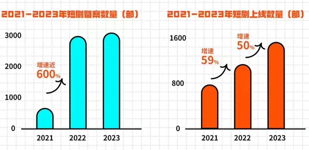 由于新剧、二轮剧都要完善备案,而短剧目前备案数量巨大且增长迅速,新规所造成的外部压力也可以预见。据广电总局数据,微短剧全年备案数量从2021年的398部上升至2022年的2775部,同比增长近600%;2023年微短剧拍摄备案量已经高达3574部、97327集。