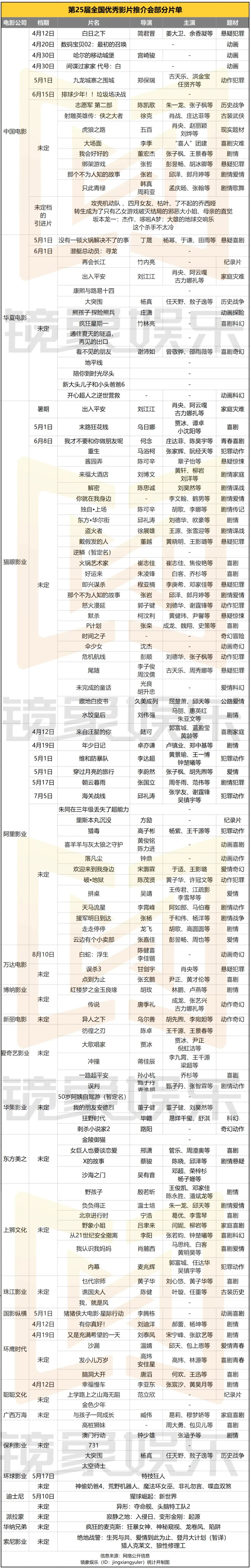 同时值得关注的是,对于影视公司而言,此类全行业性的电影推介会,也是自家储备影片一次集中宣传的好机会。推介会上,五一档定档影片几乎全部亮相,此外,除了之前已经官宣档期的影片之外,也有不少影片释出最新创作动态和档期消息。