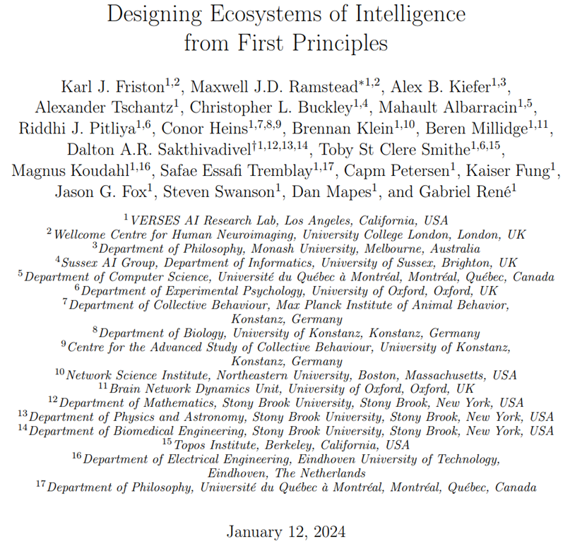 ▷Friston, Karl J., et al. "Designing ecosystems of intelligence from first principles." Collective Intelligence 3.1 (2024): 26339137231222481.