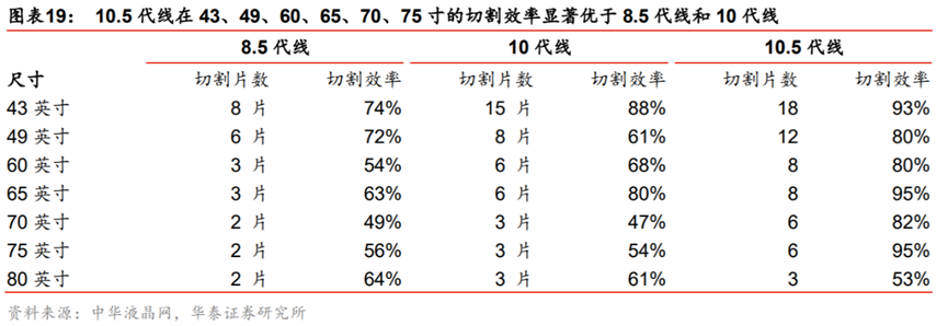 这个生产过程,就像卖炒饭一样,一小份一小份地炒,显然不如炒一大份、再分成小份更划算。同时,面板也涉及到切割效率的问题,大尺寸更容易充分利用面积。因而,面板行业有着很强的“产线高代际饥渴症”。
