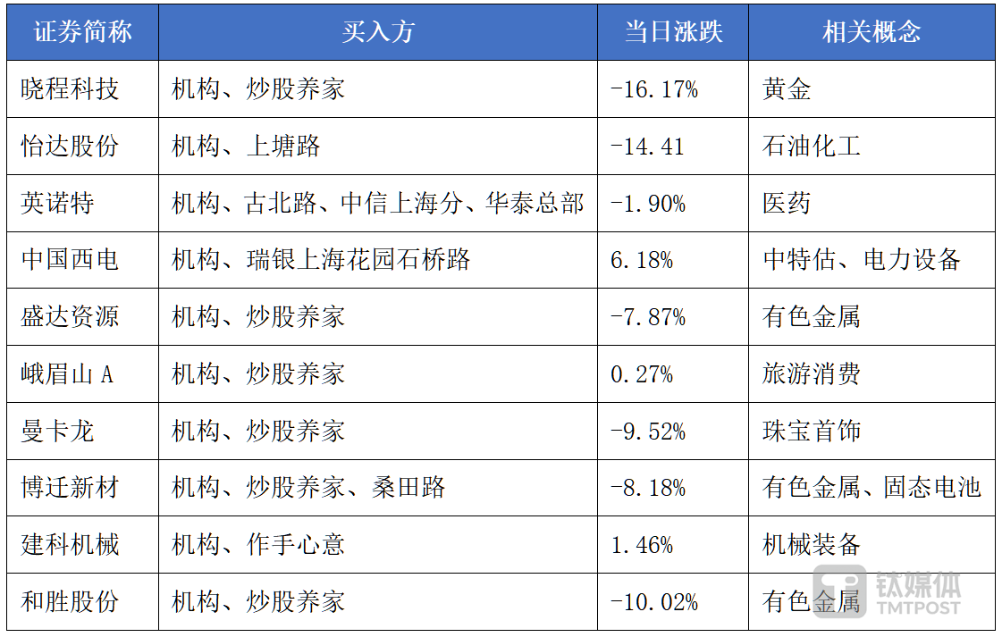 根据龙虎榜单,今日以下个股被机构和游资一同大举买入,多只个股涉及有色金属概念: