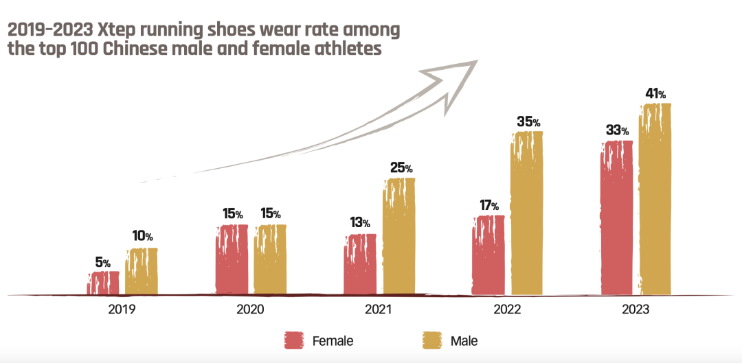 赞助大型赛事和头部运动员,是体育品牌营销最常规、最有效的方式。仔细翻看各家运动品牌财报可以发现,第三方数据平台公布的跑鞋数据战报几乎会被每家品牌引用,上脚率,尤其是精英运动员、高顺位成绩运动员的上脚率,会被看作是检验品牌能力、性能和市场占有率的核心指标。