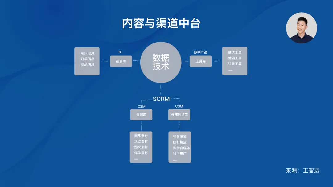 另一个主要管理外部触点,对接所有公私域渠道。比如:销售渠道,媒介投放,数字自媒体等等;如此一来,整个「品牌内容中台」和「外部传播渠道」全部打通了。