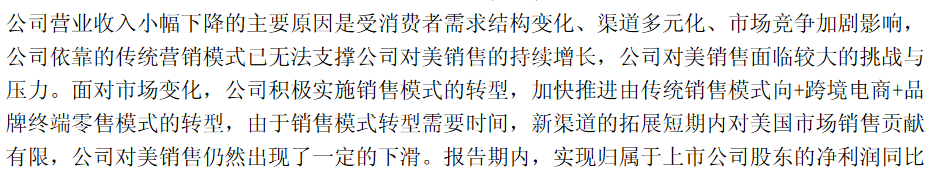 2018年,瑞贝卡在财报中指出,由于销售模式转型需要时间,新渠道的拓展短期内对美国市场销售贡献有限,公司对美销售仍然出现了一定的下滑。
