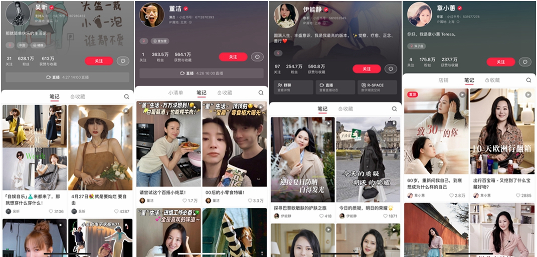 数据监测机构新榜数据显示,2023年,有76个账号在小红书涨粉超百万,其中目前粉丝363万的董洁是2023年小红书平台粉丝增长量最高的个人账号,年涨粉264万;目前粉丝175万的章小蕙,尽管位次不在最前列,2023年涨粉也已超70万。