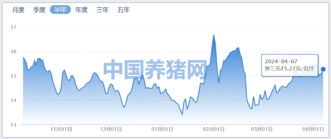 具体来说,仔猪育肥6个月后将成为生猪出栏,即仔猪存栏量是能够提前6个月判断生猪出栏变动趋势的先行指标。由于2023年4季度,北方疫情造成提前出栏,且仔猪腹泻等疫病加剧,导致仔猪供给紧张造成仔猪存栏量下降,按照虎嗅数据,近6个月仔猪存栏量累计降幅近10%。也正是由于疾病影响,涌益咨询提到育肥成活率也在同期有所下降。