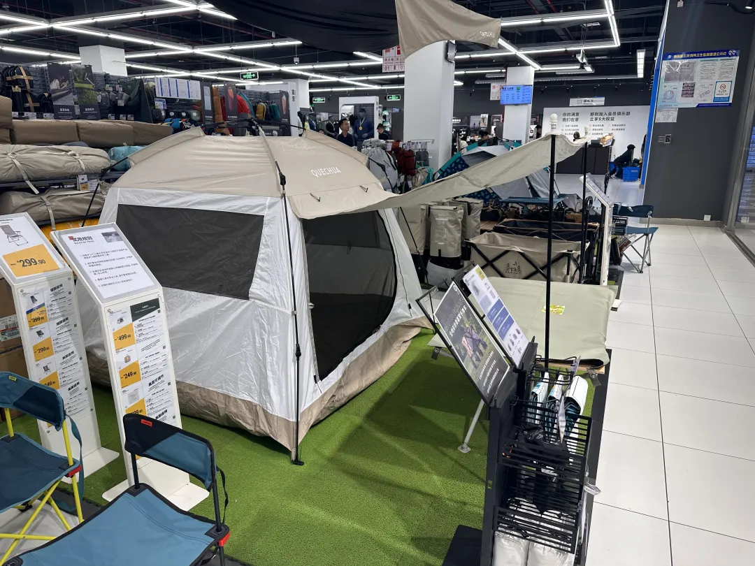 大到露营帐篷、滑雪板,小到防晒喷雾、摇摇杯,在一家迪卡侬门店里几乎所有运动装备都能找到。大部分消费者对上千块的冲锋衣、大几百的瑜伽裤望而却步时,“十项全能运动”的迪卡侬始终充当着运动领域“平价超市”的角色。