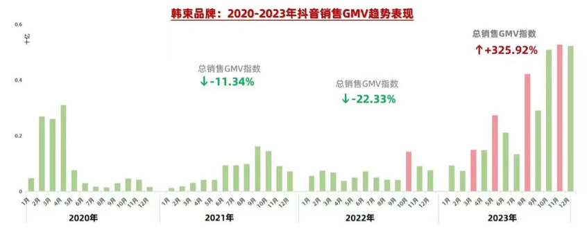 2023年,韩束一口气投资了姜十七的《以成长来装束》《心动不止一刻》《一束阳光一束爱》《全是爱与你》《你终将会红》5部短剧,剧中结合剧情软植入韩束“红蛮腰”系列。