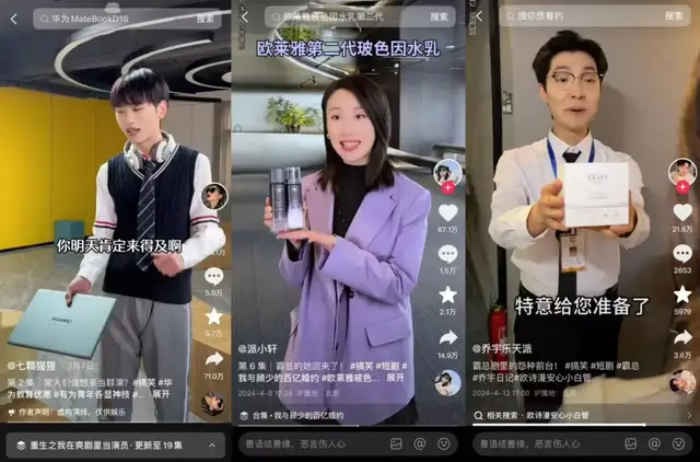 也正因此,“重生之我在霸总短剧当xx”系列的内容,获得了不少品牌主、尤其是美妆护肤品牌的青睐。