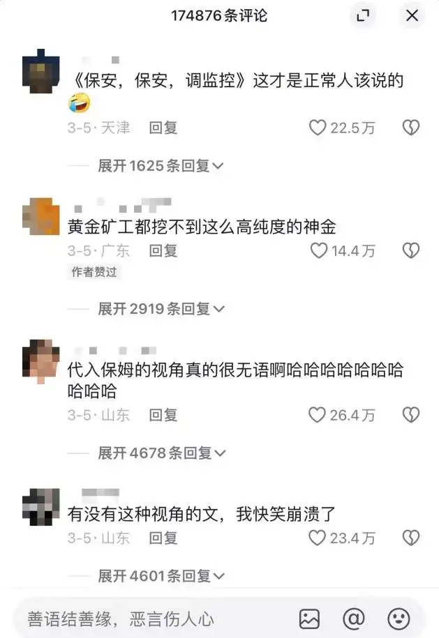 《重生》系列中,@七颗猩猩主要是重生了保姆、经纪人、炮灰同学等配角身份,当习惯代入主角的观众代入配角,爽文与现实对立撕裂则更加明显。网友们纷纷表示,“黄金矿工都挖不到这么高纯度的神金”、“以前代入女主:好爽好浪漫;现在代入保姆:好癫好无语”、“果然只能代入主角的视角,代入打工人视角,他们通通都去噶”。