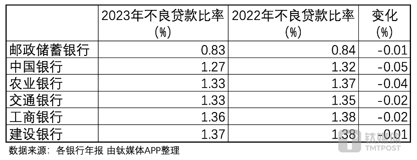 再看不良贷款数据,六大行的不良贷款率都有所下降,可以说经营贷对大行不良贷款率的影响较小。