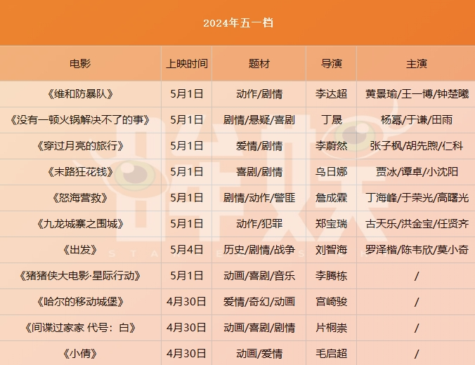 眸娱对已经官宣定档五一的11部电影进行了整理,主要呈现出以下特点: