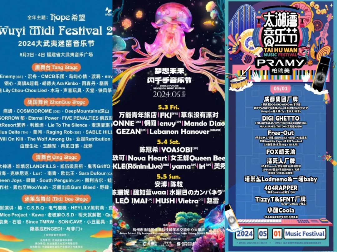 同时,五一线下演出也将迎来高峰,目前已经有超过30个音乐节官宣,张学友、郭富城、时代少年团、华晨宇、任贤齐等多位歌手都将在五一举办演唱会。