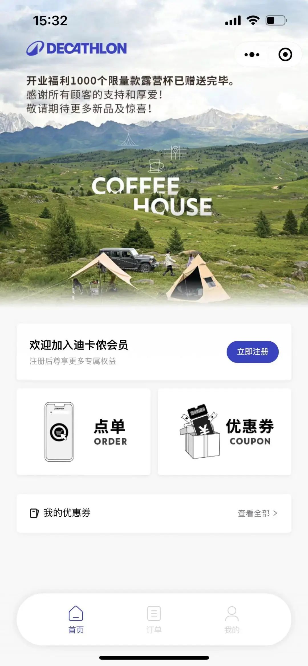 近日,迪卡侬全国首家咖啡角COFFEE HOUSE在上海五角场开业,店内上线咖啡、运动特饮、烘焙等多个系列,其中运动特饮系列中有含电解质、左旋肉碱、蛋白粉的特色产品。此外,据迪卡侬咖啡小程序显示,该门店开业期间共计赠送了1000个限量款露营杯。