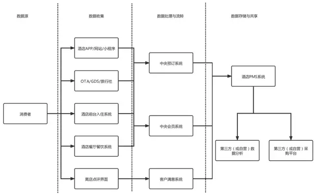 在梳理酒店运营中常见的前中后台网络系统板块后,《酒管财经》发现个人信息在酒店系统的收集、流转路径背后,潜藏被泄露的风险。