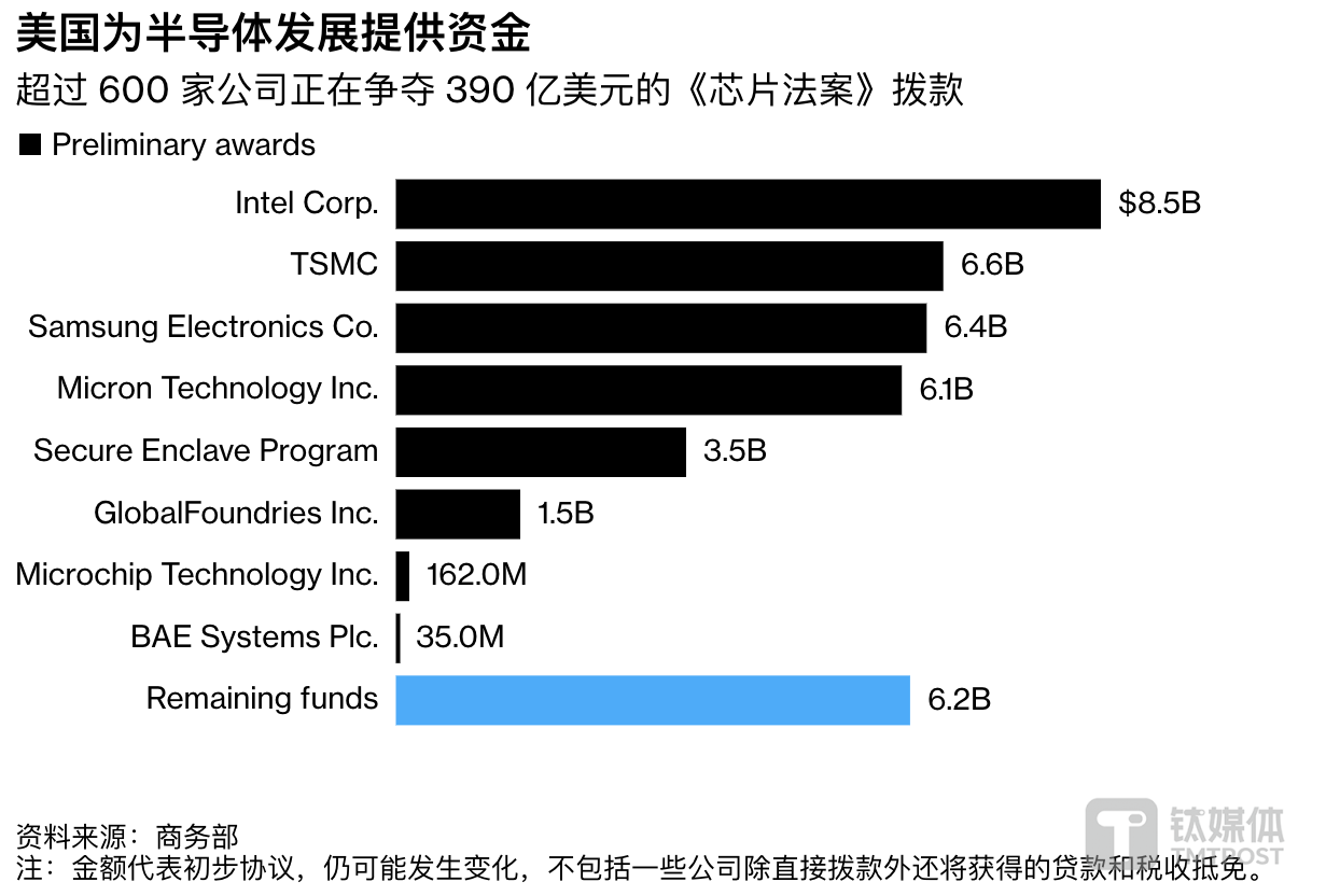 最近几周,雷蒙多团队公布,英特尔、台积电、三星电子获得数十亿美元的政府补助,本周还将宣布为存储芯片大厂美光科技给予政府补贴,整体金额已超过300亿美元。而自美国总统拜登上任以来,联邦资金已刺激了超过2000亿美元的私有半导体投资,已经有超过600家公司表示有兴趣,分配金额已接近85%。