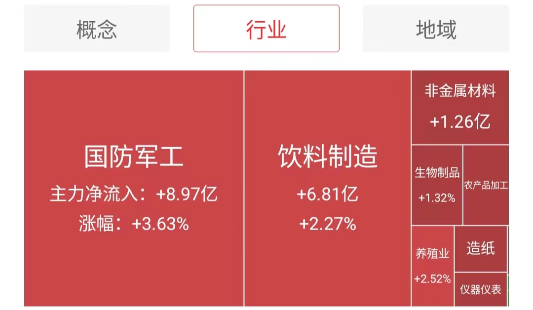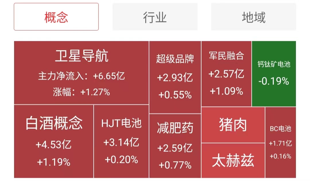 主力资金净流入最多的行业板块是国防军工、饮料制造板块,流入最多的概念板块是卫星导航、白酒概念、HJT电池概念板块。