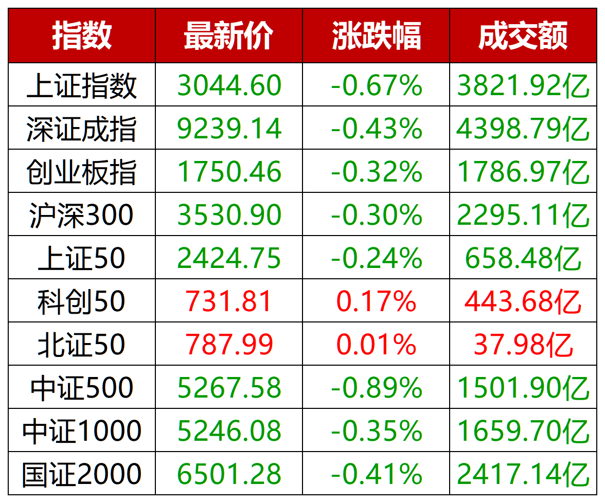 沪深两市今日成交额8221亿,较上个交易日缩量382亿。全市场超3300只个股下跌。北向资金全天小幅净买入13.89亿元,其中沪股通净买入9.08亿元,深股通净买入4.81亿元。