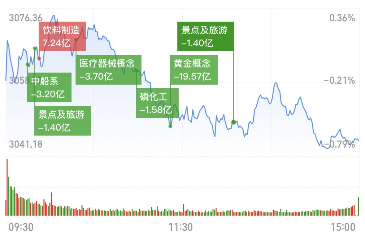今日三大指数集体收跌,盘中虽有翻红尝试,但是量能不足、热点板块缺失,盘中电风扇轮动加快、赚钱效应不足,尾盘再度出现跳水。