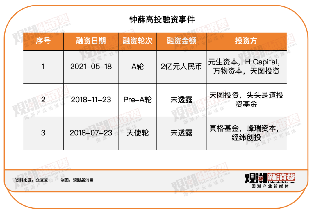 恰逢新消费崛起,资本对于传统消费行业的颠覆者宽容度极高。钟薛高在创办初期就拿到了真格基金、峰瑞资本、经纬中国等机构的投资,2021年又获得了元生资本、H Capital、万物资本近2亿元的投资。