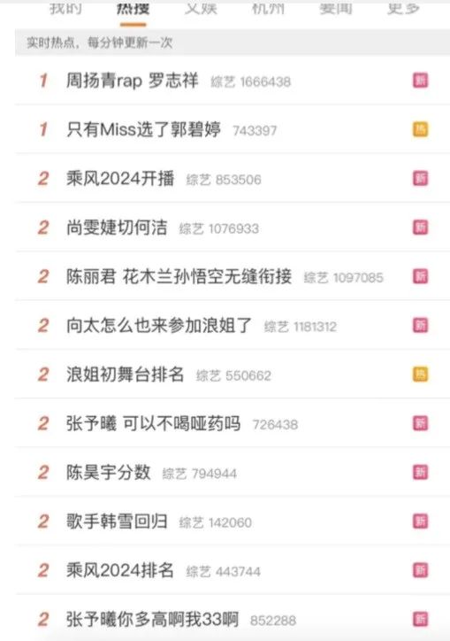 乐观或许为时尚早。纵观这届“浪姐”的首播,我们也会发现:看似仍然声势浩大的舆论盛世,#向太怎么也来参加浪姐了##苗苗浪姐初舞台站反了##周扬青rap 罗志祥#等话题相继登上热搜,集齐了舆论八卦、情怀价值、舞台事故等多个话题,但据不完全统计也只有一个#陈丽君断层第一#的话题阅读量破亿。
