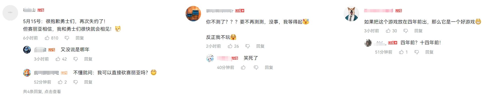 在B站@地下城与勇士手游官宣视频的评论区中,部分人表达出不看好的态度,不是事先替官方准备好道歉声明,就是低分警告,甚至有部分玩家明确表示,自己年纪大了,已经没有时间再去守护游戏中的赛丽亚。