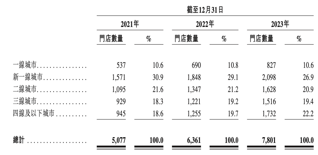 茶百道表示,“在维持一线及新一线城市的地位以提升品牌知名度及紧跟不断变化的市场趋势的同时,一直渗透并将继续渗透至拥有巨大消费增长潜力的低线级城市。”