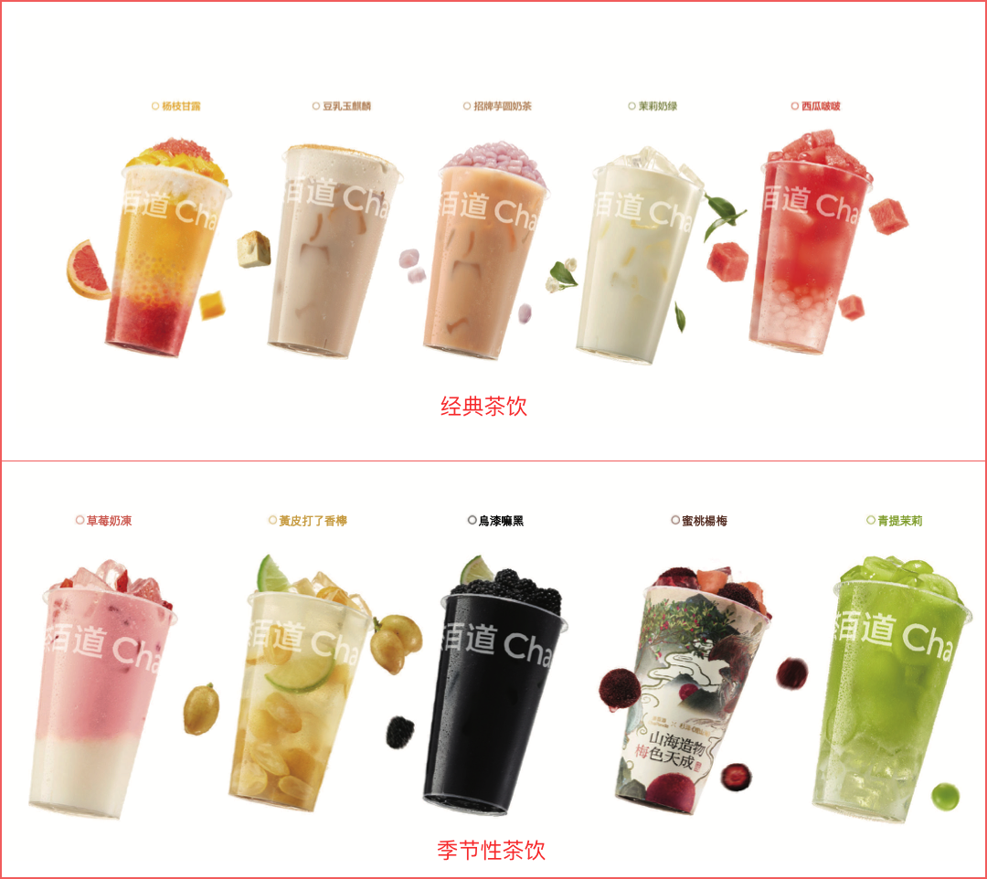 产品方面,茶百道的产品组合包括各种经典茶饮、季节性茶饮及区域性茶饮。在茶百道门店,经典茶饮通常全年供应,而季节性茶饮及区域性茶饮仅在特定时间或区域销售,据茶百道介绍,主要取决于相关时令水果或当地特色水果的可获得性、消费者接受度以及销售及营销因素。