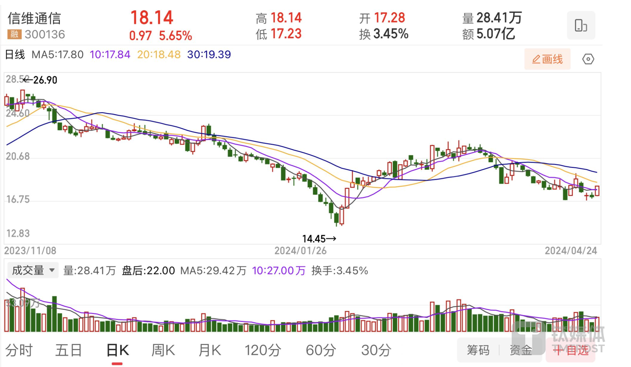 二级市场方面,截至4月24日收盘,公司股价报收18.14元,涨幅5.65%,当前总市值为175.5亿元。