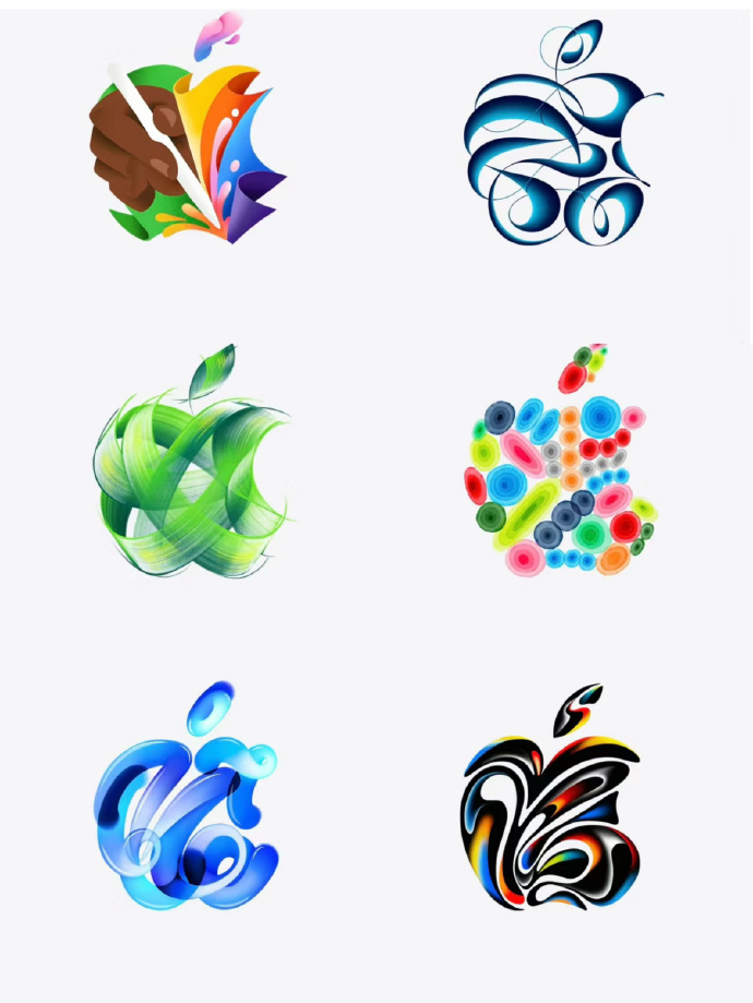 突破常规往往意味着惊喜,从苹果官方发布的宣传物料来看(6个新Logo和一段动画),主Logo上有明显的Apple Pencil元素,小雷认为这很有可能是苹果发布第三代触控笔Apple Pencil 3的明显信号。除此之外,另外5个极具设计感的Logo均以笔刷为主题,可能分别对应着不同型号的iPad新品,毕竟Apple Pencil也是iPad的配件之一,以Apple Pencil 3为轴,维系全新iPad产品线,听上去也挺合理。