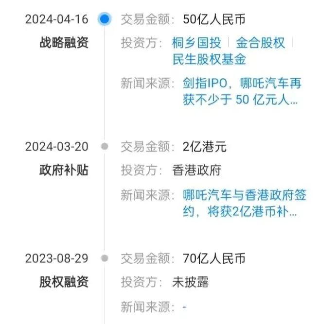 在拿到日前这笔50亿资金前,为推进哪吒快速上市,去年8月哪吒汽车曾拿到一笔70亿元的Crossover轮融。