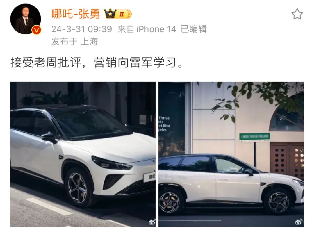 过去的半年里,在投资人360集团董事长周鸿祎的“怒怼”和“学小米”的建议下,张勇正积极在哪吒汽车内部掀起一场营销变革。具体措施包括重整营销团队、亲自兼任营销公司总裁、亲自下场搞社媒营销等等。