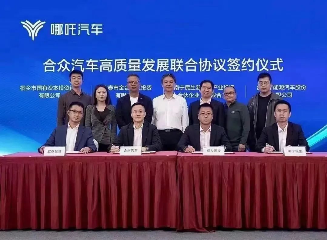 4月15日,哪吒汽车母公司合众汽车宣布,桐乡市国有资本投资运营有限公司、宜春市金合股权投资有限公司、南宁民生新能源产业投资合伙企业(有限合伙)三方与合众汽车共同签署《合众汽车高质量发展联合协议》。