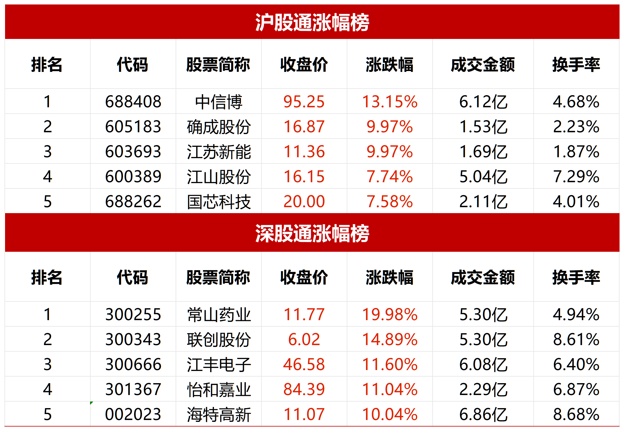 沪深两市今日成交额7743亿,较上个交易日缩量211亿。全市场超2900只个股上涨。北向资金全天净买入3.49亿,其中沪股通净买入9.21亿元,深股通净卖出5.72亿元。