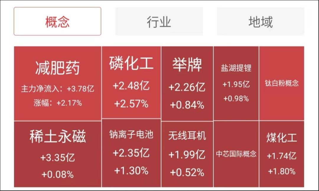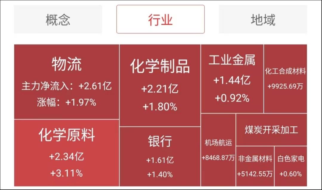 主力资金净流入最多的行业板块是物流、化学原料、化学制品板块,流入最多的概念板块是减肥药、稀土永磁、磷化工概念板块。