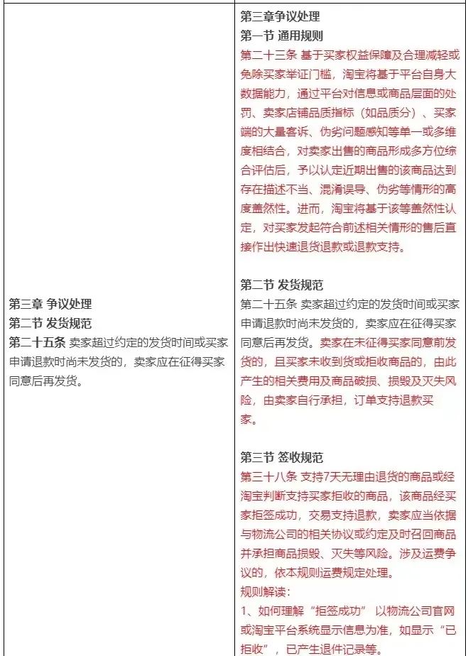 这并非没有先例。去年年底,淘宝开通“仅退款”服务,彼时行业内便有大量商家的质疑之声。但实操过程中便会发现,平台方在出现争议时做了相对公正的裁判。据悉,淘宝施行的仅退款,需要消费者主动点击选择,且卖家可以申请拒绝,此后平台方会申请介入。淘宝会结合双方信息、卖家店铺品质指标(如品质分)、买家端客诉情况、伪劣问题等单一或多维度,对争执进行全方位综合评估后,对商品情况进行认定,再判断是否支持。