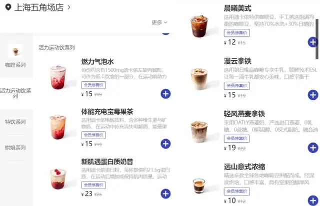 从更宏观的视角来看,目前鲜少有运动系列特饮出现在咖啡店中。迪卡侬的特色系列,既能帮助咖啡店塑造足够有话题度的差异化,又能抓住行业空白,有机会培养出一个新品类。