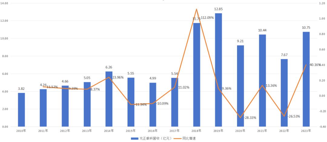 图:光正眼科历史营收及增速,来源:锦缎研究院
