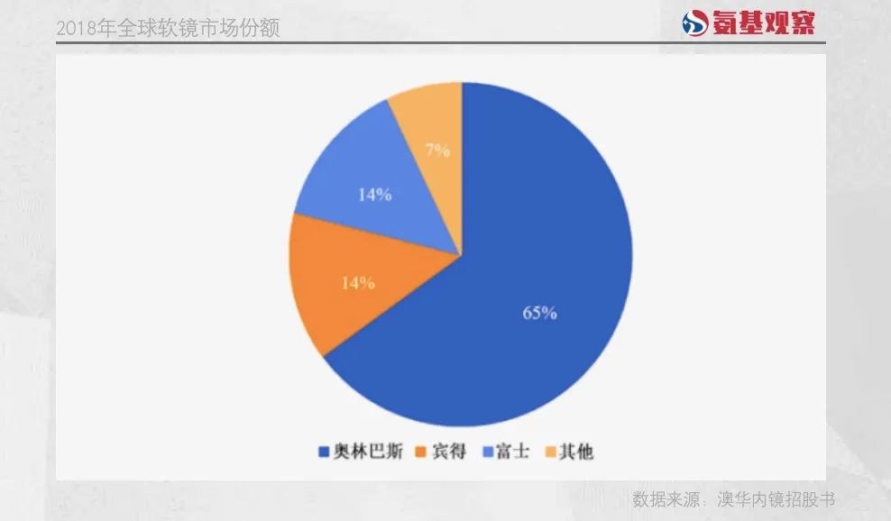 如下图所示,根据澳华内镜招股书,在传统软镜市场,奥林巴斯以65%的市场份额,稳居全球第一。紧随其后的宾得和富士,也均是日本企业,三者合计占据软镜市场93%的市场份额。