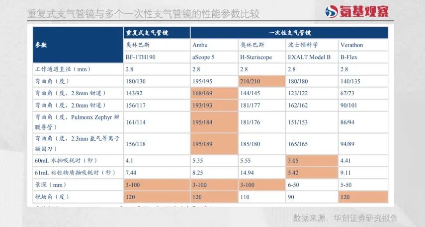 如下图所示,经过不断的追赶,一次性内窥镜的临床性能已经逐渐接近,甚至在部分(橙色)参数方面超越了重复式软镜,满足了基本的临床需求。