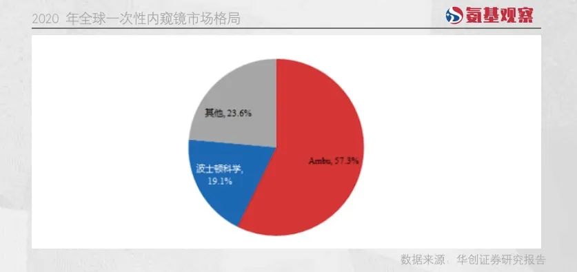 早在2020年,Ambu已经在一次性内窥镜领域确立了其主导地位,以57.3%的市场份额领先市场,波士顿科学则以19.1%的市场份额位居第二。