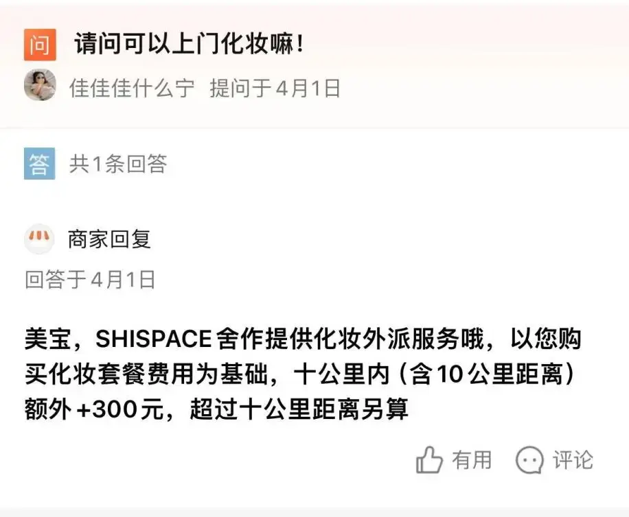 不仅如此,为了满足更广泛的客户需求,店铺还推出了化妆外派增值服务。在购买指定化妆套餐的基础上,顾客可以选择额外支付三百元,享受十公里范围内的上门化妆服务,提供更加便捷和私人定制的美容解决方案。