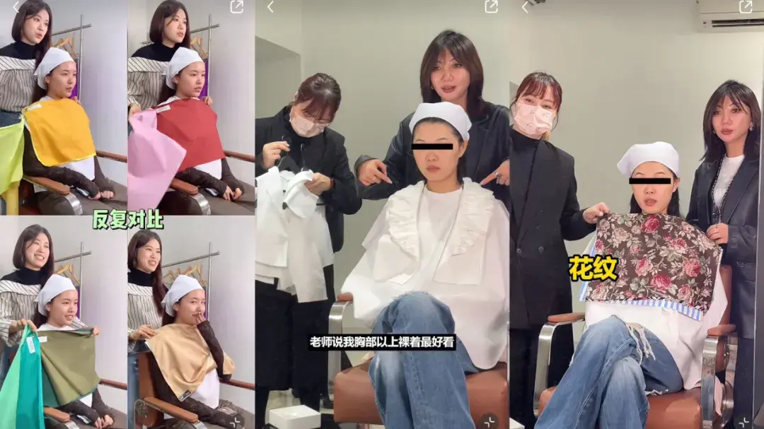 平台上博主们的探店打卡为色彩测试的爆火添了一把柴。视频里展示了该服务的整套流程,色彩形象顾问使用色布和色卡对比顾客的肤色,以确定最适合的色调冷暖、亮度和色系,甚至还会分析你适合什么样子的花纹、什么形状的领口、什么风格的首饰和镜框,主打一个事无巨细。