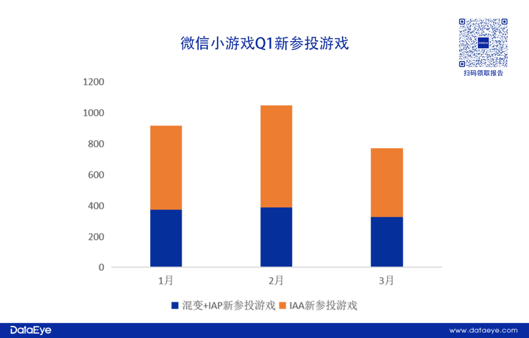 具体来看,2月春节档假期超过1000款产品进入投放市场,3月有所回落,主要是IAA新游参投数减少。